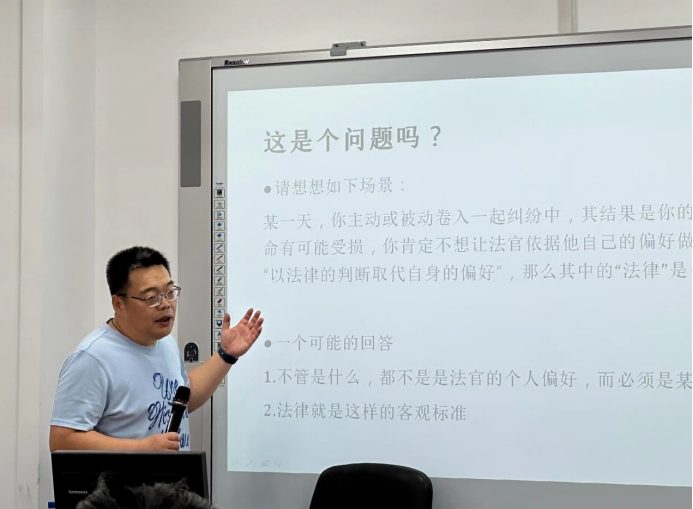 陈景辉教授在讲座开始后即指出,为了回应上一场讲座中大家关注的循环论证问题,必须讨论什么是(法学的)法律。他指出,如果我们接受道德和法律都有真值这一前提,那么我们就必须面对区分道德和法律的难题。在区分了“法律”的四种语义之后,陈景辉教授指出,“实在法”相对于其他三种语义具有优先性,因为在法律实践中,只有实在法可以被直接提及,而其他三种语义只能与实在法被一同提及。因此,他指出,最早体系性地揭示出只有实在法才是适当(proper)意义的法律的奥斯丁真正开启了法哲学的研究。