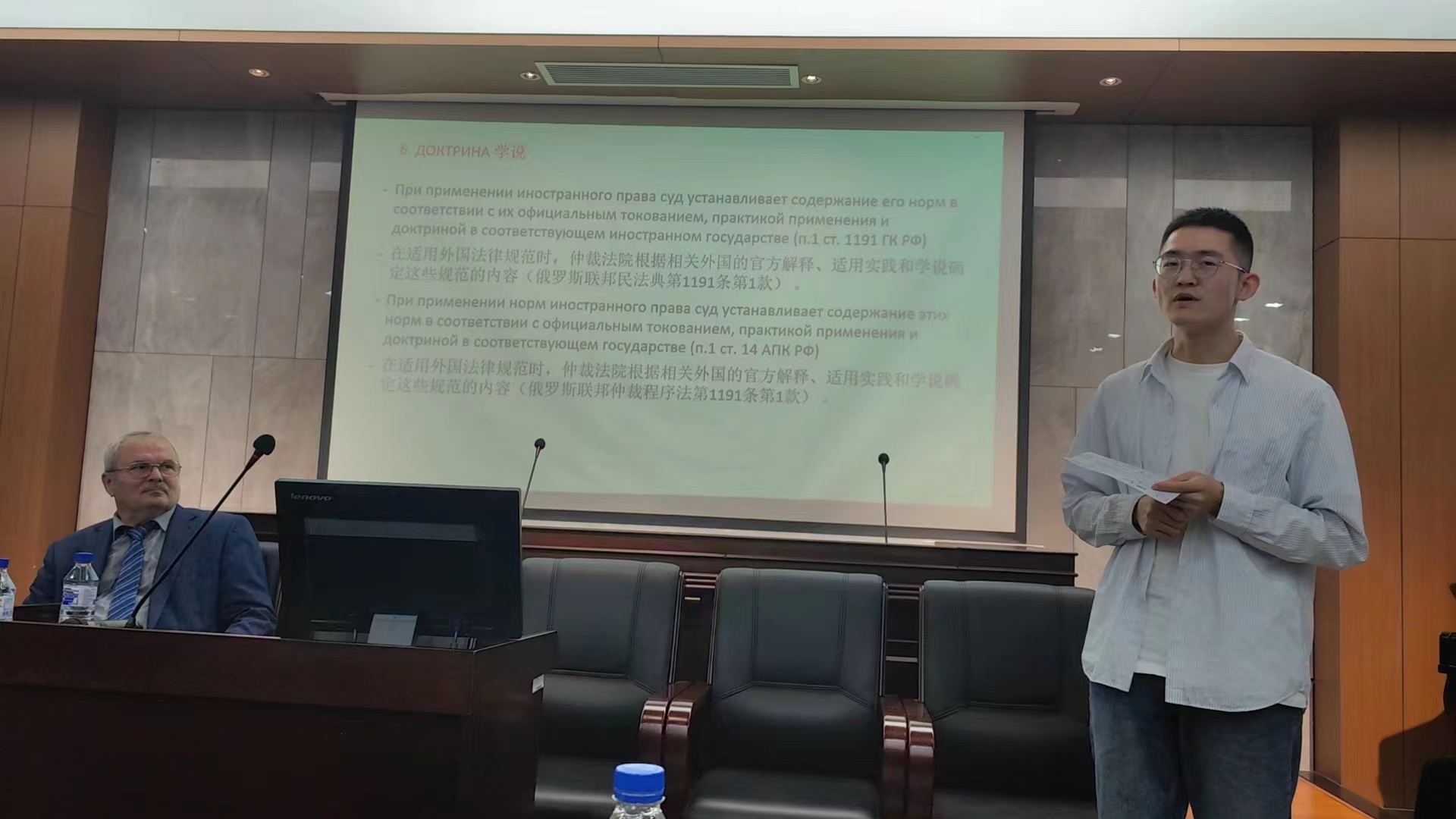Popondopulo Vladimir教授作为俄罗斯商法学的顶尖学者,为同学们带来了一场商法学的饕餮盛宴。进一步加深了同学们对商业法渊源这一问题的理解和认知,带领我们领略了俄罗斯商业法渊源的丰富性和多样性。