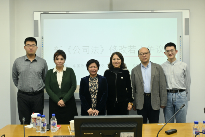 讲座伊始,王艳梅教授对于陈景善教授的远到而来表示了诚挚欢迎,对陈景善教授融汇商法研究问题与民法基础理论的研究风格予以高度评价。随后,陈景善教授选取新公司法的五大热点问题,结合法律移植与本土化、民法典与相关司法解释的融入,对新公司法的修法考量与修改特色进行了详细介绍。