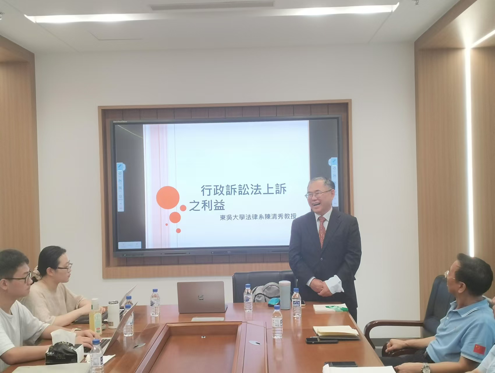 开展学术交流,并作题为“违反秩序行为之违法性与主观责任”与“行政诉讼法上诉之利益”的两场学术讲座。本院师生热烈欢迎陈清秀教授的到来,积极参与学术活动,与陈清秀教授深度交流学习。