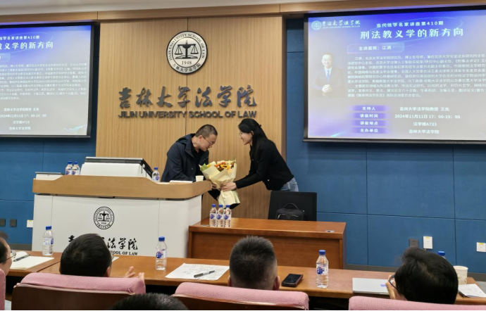 讲座结束后,同学代表为江溯教授献上花束,表示极速赛车