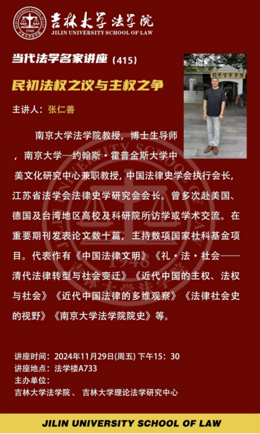 教授,博士生导师,南京大学一约翰斯·霍普金斯大学中美文化研究中心兼职教授,中国法律史学会执行会长,江苏省法学会法律史学研究会会长。曾多次赴美国、德国及台湾地区高校及科研院所访学或学术交流。在重要期刊发表论文数十篇,主持数项国家社科基金项目。代表作有《中国法律文明》《礼·法·社会——清代法律转型与社会变迁》《近代中国的主权、法权与社会》《近代中国法律的多维观察》《法律社会史的视野》《南京大学极速赛车