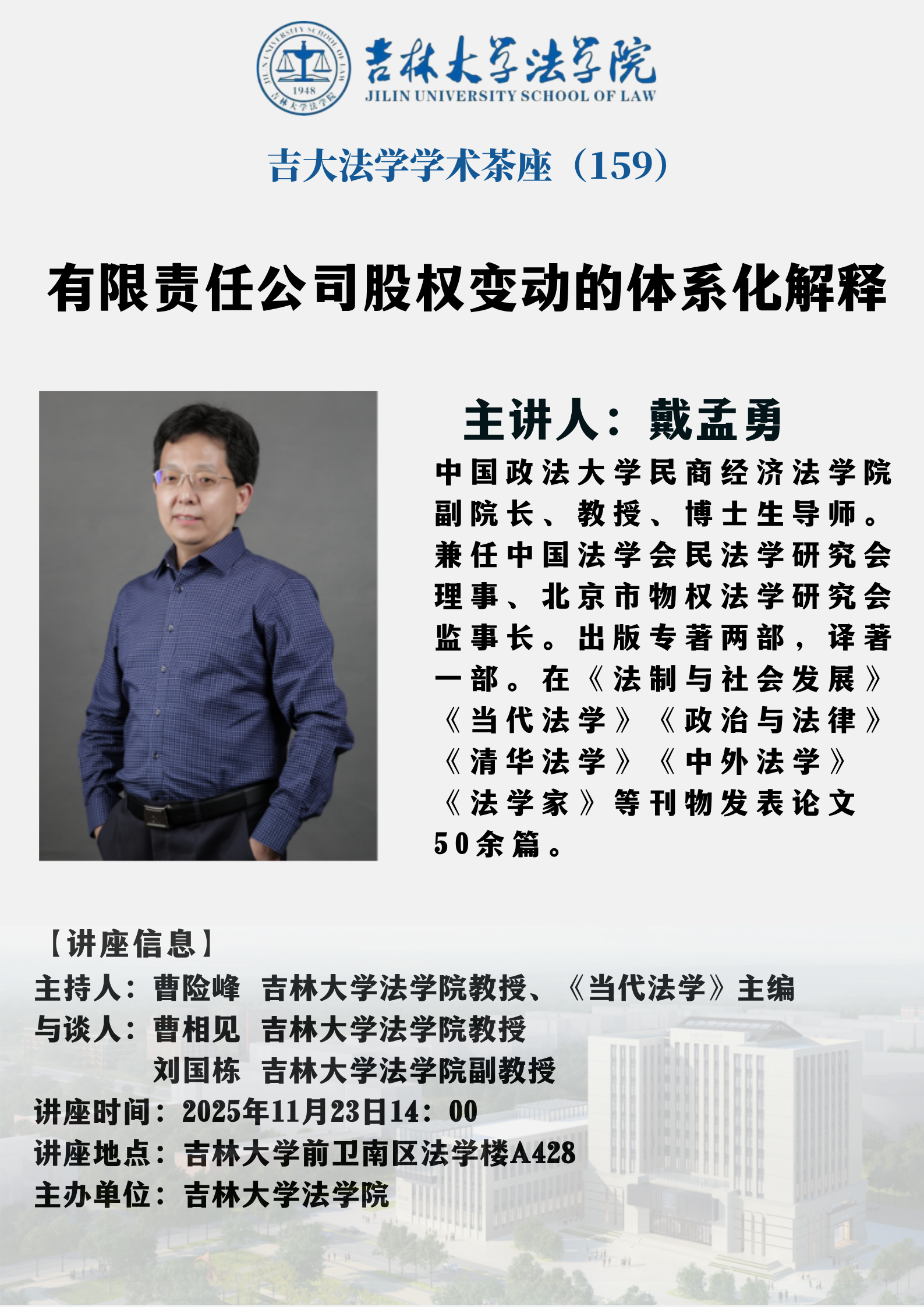上一篇:吉大法学学术茶座(160):家庭财产功能主义婚姻、交易、商事法律规范系统化构造 下一篇:海(境)外学者讲座(256):基于多学科犯罪学的统合性犯罪预防政策