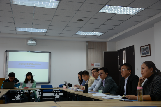 王艳梅老师首先就本次座谈会的目的和意义作了说明,希望同学们能够畅所欲言,就目前运行的2013版本科培养方案及教学过程中存在的问题和应该坚持的成功做法发表自己的看法,并对2017版本科培养方案的制定提出一些建设性的意见。
