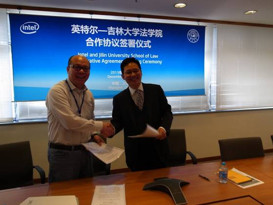 与英特尔(中国)有限公司总裁戈峻先生在合作协议上签字,英特尔公司在沪的法务高管出席了签字协议。