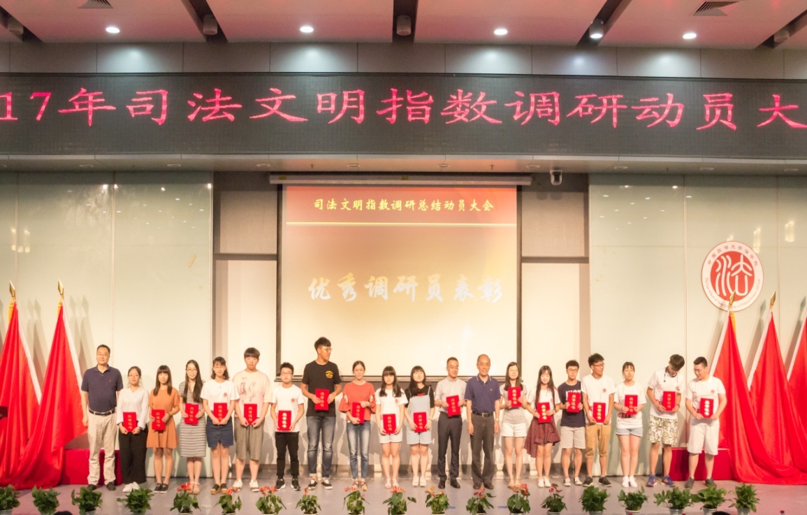 2014级博士生张兴美、2014级诉讼法学硕士研究生杜瑞晗、2015级诉讼法学硕士研究生刘晓、2015级法律硕士研究生周金明被评为司法文明指数调研工作先进个人。