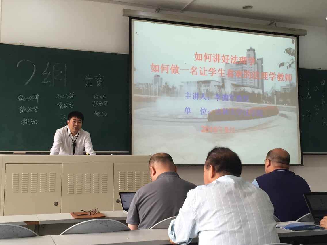 面向全体教职员工举办“五师工程”之强师能讲座。本次讲座的主讲人是法理学教研部的博士生导师李拥军教授,他以“如何讲好法理学”、“如何做一名让学生喜欢的法理学老师”为出发点,结合自身的教学实践,引经据典,娓娓道来。