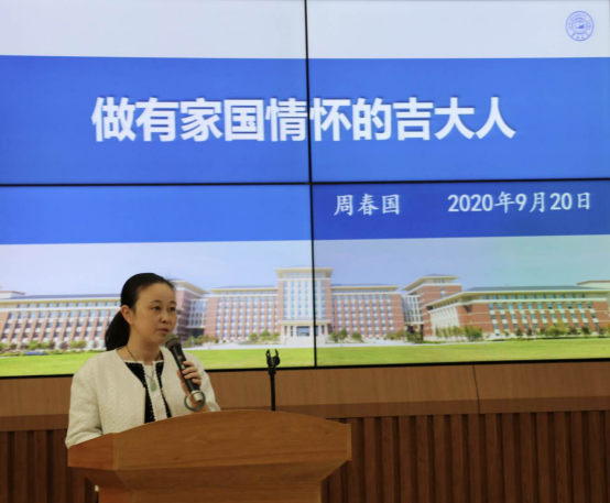 To help freshmen adapt to university life, Zhou Chunguo, Secretary of CPC Committee at School of Law delivered a lecture on the topic of “To become a JLUer with Patriotism” on 20th September in accordance with the “ Sailing Plan” for 2020 freshmen. Zhou started to introduce Jilin University and then analyzed the current status and trends of global advancement and encouraged students to develop into a sense of responsibility. The lecture was hosted by Lin Yuanyuan, Deputy Secretary of the CPC Committee and Deputy Dean of School of Law.