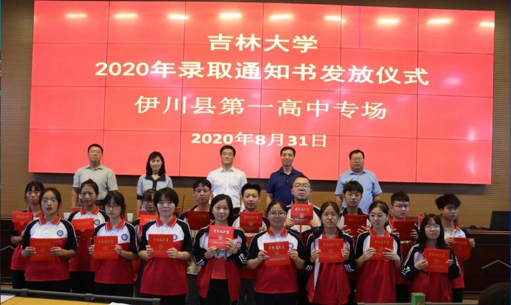 About 830 undergraduates of Henan Province are recruited to Jilin University each year. To attract more excellent students, Zhou Chunguo,Secretary of CPC Committee of School of Law, Liu Sa, the editor of Propaganda Department of Party Committee of Jilin University, Liu Jian the deputy director of Research Center of Jurisprudence, attended the Jilin University 2020 Acceptance Letter Granting Ceremony at Henan Yichuan No.1 Senior High School. The acceptance letters from Jilin University were handed over to 17 freshmen at the ceremony by Cheng Tiejing, the principal of Yichuan No.1 Senior High School, and Zhao Xiansheng, the vice-principal. Afterwards, Zhou Chunguo delivered a lecture titled “Dreams begin at JLU to more than 800 high school students. Zhou presented the academic advantages, beautiful campus and loving care of JLU. He also provided guidance for students to better plan their future study and looked into the bright future.