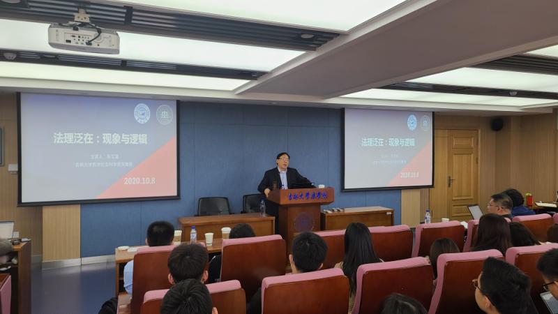 Professor Zhang Wenxian, member of the Party Group of China Law Society, Director of the Academic Committee, Senior Professor of Philosophy and Social Sciences of Jilin University, delivered a lecture on “Ubiquitous Jurisprudence: Phenomenon and Logic” for doctoral and master students majoring in jurisprudence and judicial civilization on 8 October.