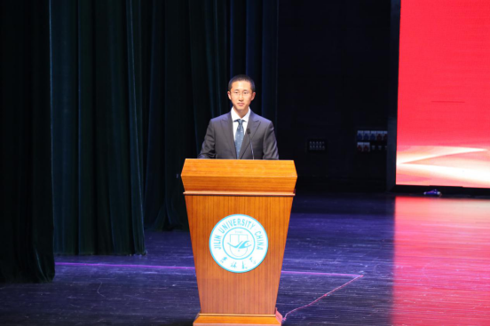 Wang Yichuan and Sun Yu delivered speeches on behalf of freshmen and current students.