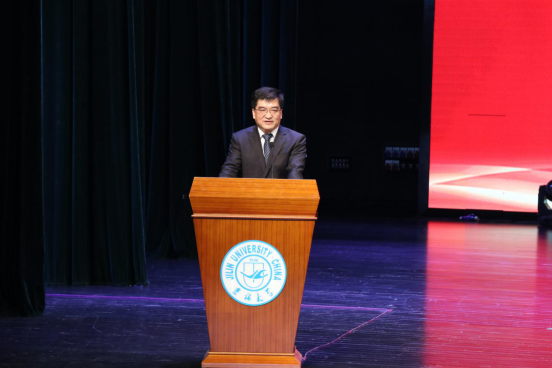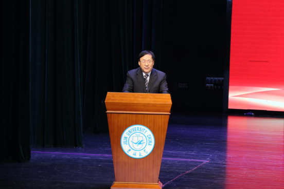 Prof. Zhang Wenxian addressed at the ceremony. Firstly, he expressed warm welcome and congratulations to the new students. Then he reviewed the honorable history of Jilin University School of Law through his own studying and teaching experience, and told moving stories of excellent alumni to the students. He said that School of Law is like a jewelry store of legal research and encouraged students to make full use of time while studying at school. At last, he wished that students could make great achievements and contribute to the future of Jilin University School of Law.