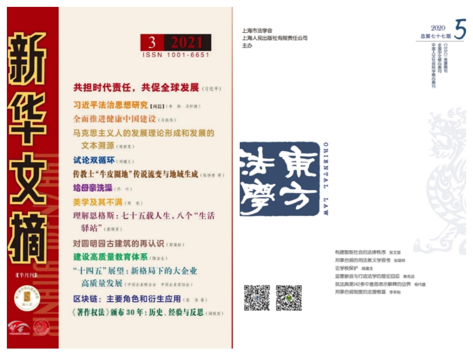 学术委员会主任张文显资深教授的学术引领性文章《构建智能社会的法律秩序》被《新华文摘》2021年第3期全文转载(原文以“特稿”的形式刊发于《东方法学》2020年第5期),产生了良好的学术影响。